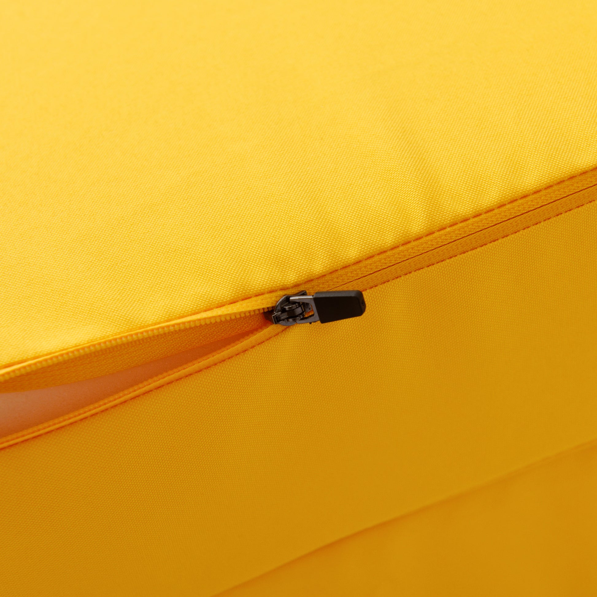 Yellow Outdoor 2 piece cushion set includes back and seat cushions in a vacuum sealed bag. Dense foam cushion inserts offer a comfortable seating experience. Easy to clean polyester material is water repellent, slip covers unzip so you can add another pillow insert to the back cushion for firmness if needed (Extra foam insert are included with order at not additional cost).